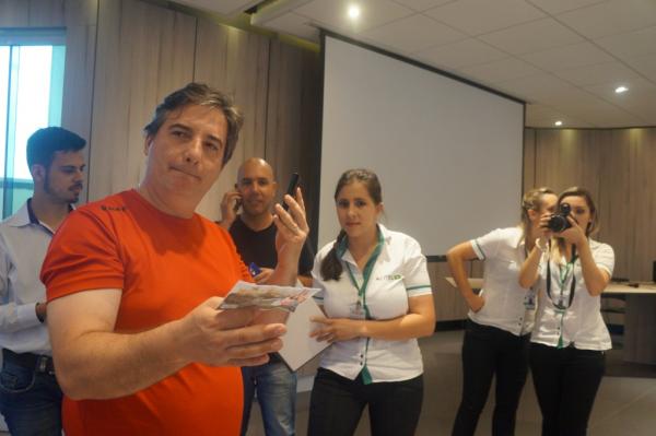 Além dos clientes que tinham seus cupons e foram prestigiar o sorteio, lá esteve também o prefeito Luiz Carlos Gibson e o presidente da Câmara, vereador Mario Cesar Marcondes.
