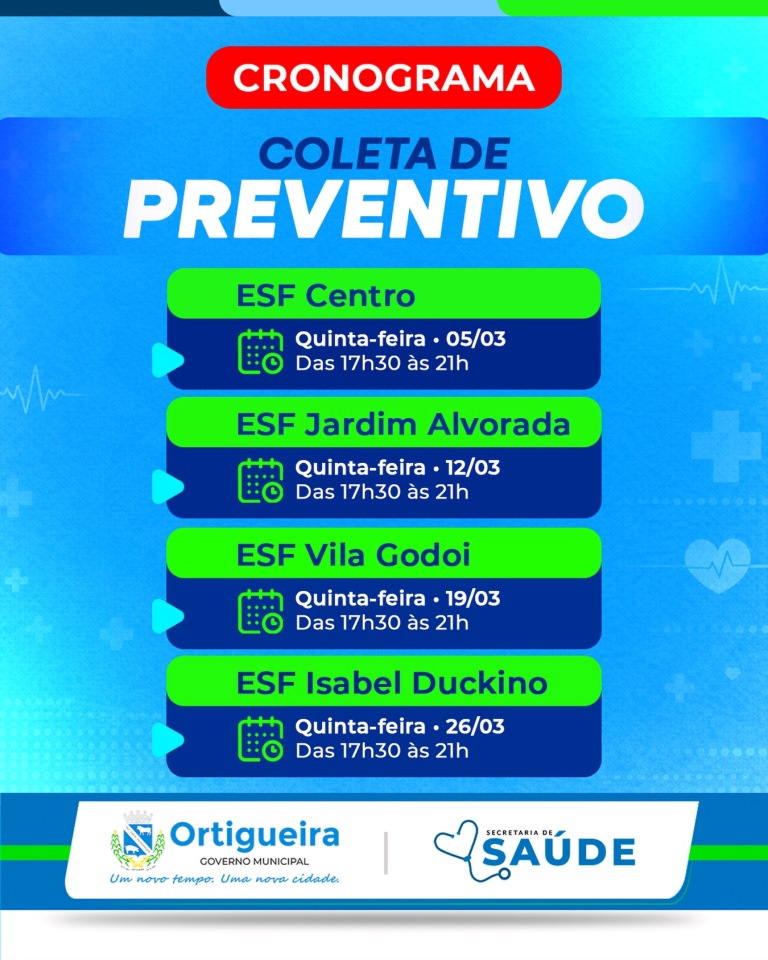 Em Ortigueira, veja a programação para coleta de Preventivos! (PMO)