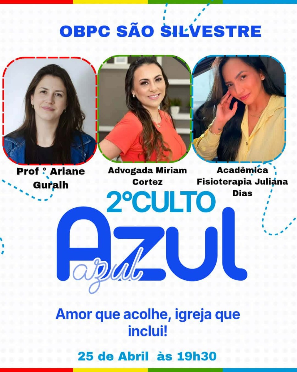 NA OBPC DA SÃO SILVESTRE, O 2º CULTO AZUL, NO DIA 25!