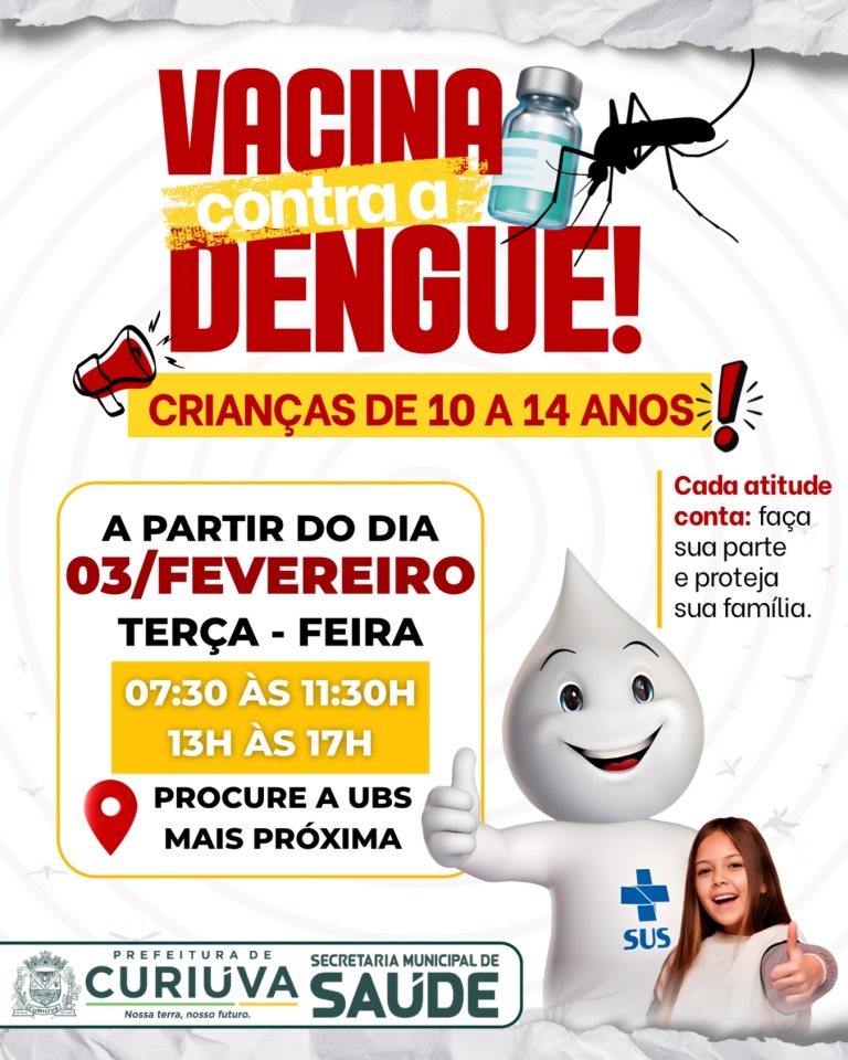 Curiúva tem vacinação contra a dengue para crianças de 10 a 14 anos