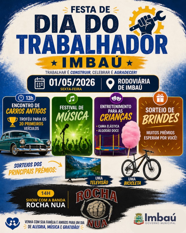 Imbaú abre inscrições para o Festival de Música em comemoração ao Dia do Trabalhador. (PMI)