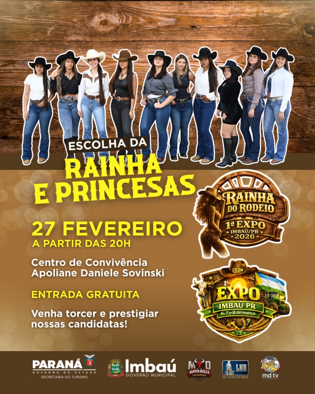 Escolha da Rainha e Princesas da 1ª Expo Imbaú/PR 2026 acontece nesta sexta-feira, 27. (PMI)