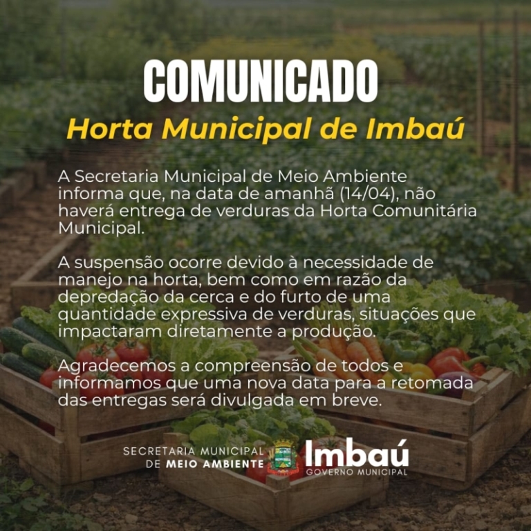 Entrega de verduras da Horta Comunitária é suspensa temporariamente, em Imbaú. (PMI)