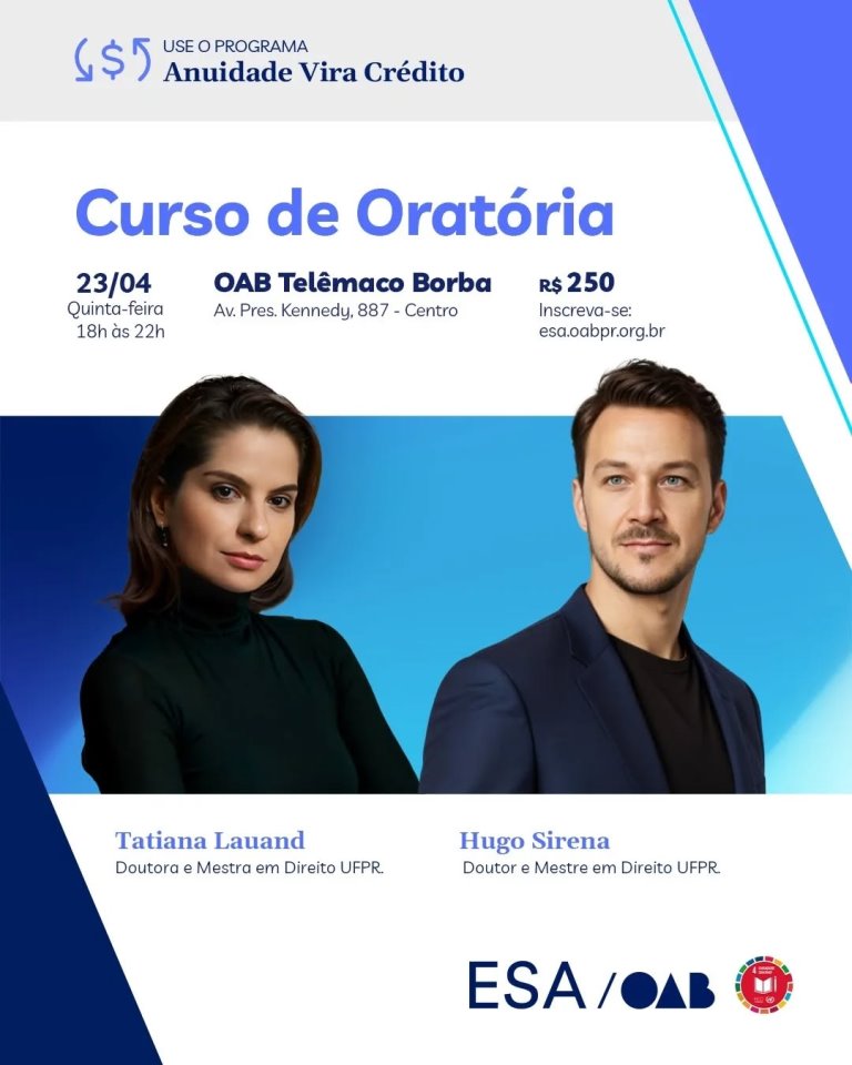 Na quinta e sexta, na OAB, curso de Oratória. Faça sua Inscrição, incluindo Sustentação Oral