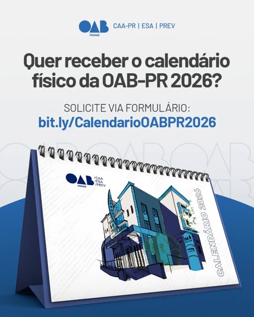 Quer receber o calendário físico da OAB-PR? Aos advogados, veja como solicitar