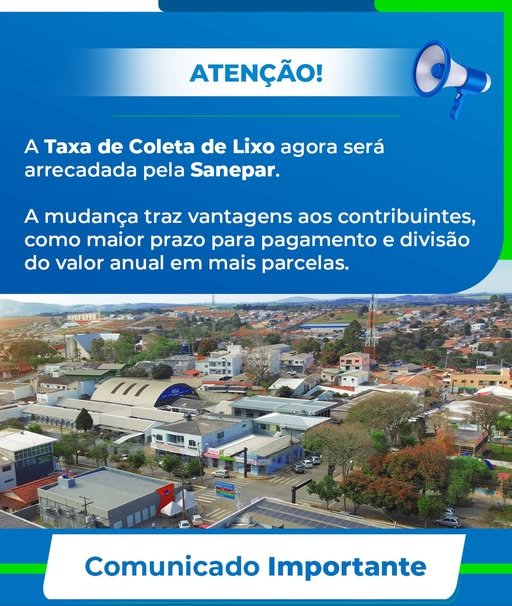 Taxa de Limpeza Pública, em Ortigueira. Desconto será no talão da Sanepar