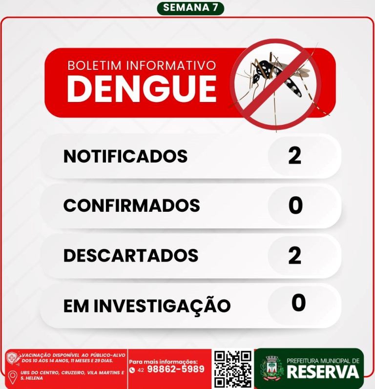 Saúde de Reserva divulga Boletim de Combate à dengue. (PMR)