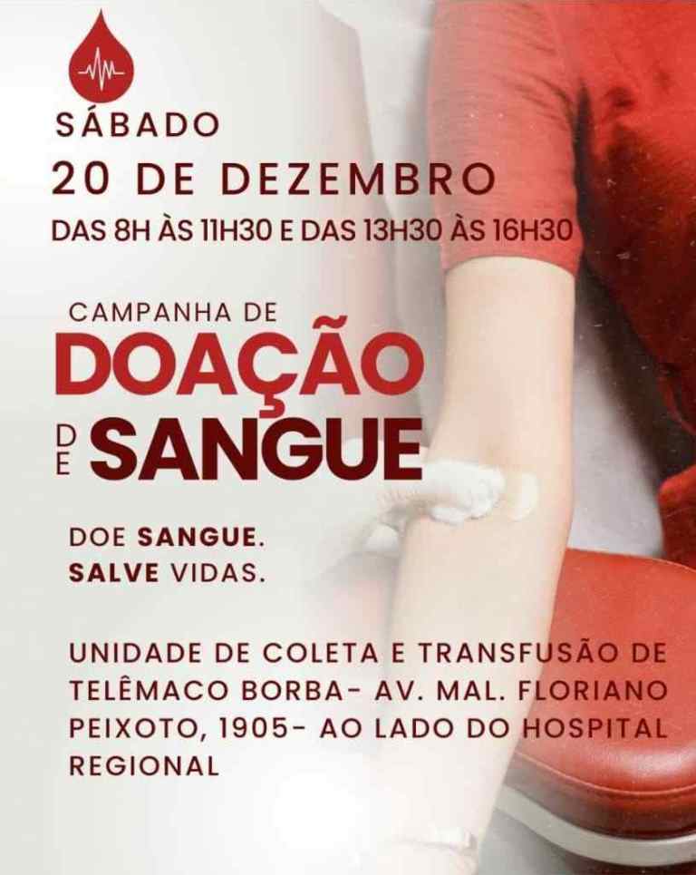 Hemepar convoca doadores de sangue: Campanha especial de Natal neste sábado (20)