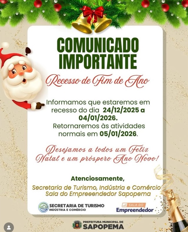 Fique atento, em Sapopema, com comunicado de recesso. (PMS)