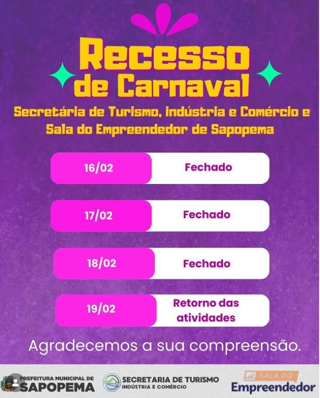 Órgãos públicos terão horários diferenciados no Carnaval. (PMTB)