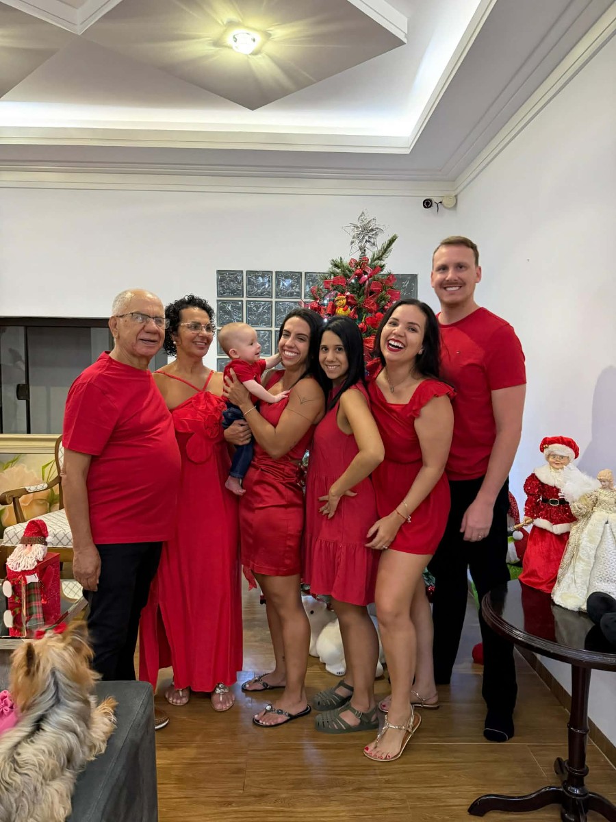 16/01/26 às 15:10:36) Que família mais linda que tem o patriarca, JANDIR MONTEIRO, a matriarca, ANGELA CALIXTO. O bebê, BENJAMIM, é filho de JUÇARA e ERICK, e recebe todo paparico das titias YASMIM e TAINÁ. Jandir é ex-seminarista Redentorista, reside em Ponta Porã (MS), “e é um queridíssimo amigo!”.