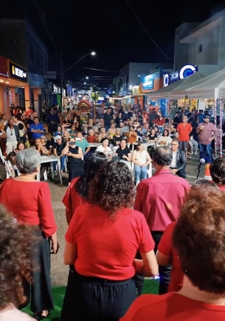 O coral do Centro de Convivência da Melhor Idade encantou as pessoas que passavam e estavam na Rua Paraná, levando alegria, emoção e mensagens que tocaram o coração de quem acompanhou o momento.