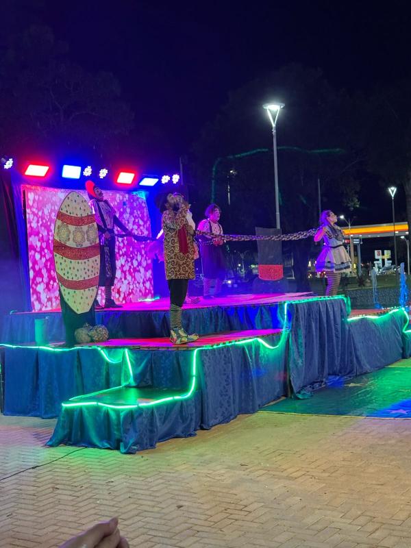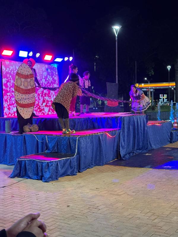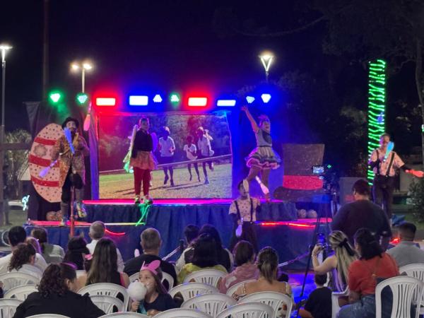 18/04/25 às 08:26:56) E ontem, quinta-feira (17), foi noite de apresentação do teatro Estripulias de Páscoa, na Páscoa na Praça Dr. Horácio Klabin, centro da cidade.