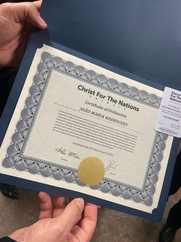 01/05/25 às 08:13:12) O pastor João Maria Rodrigues da Igreja Batista Betel, em Telêmaco Borba, recebeu na noite de terça-feira (29), o reconhecimento internacional de seu Ministério Pastoral, junto ao Instituto CFN - Christ For The Nations, em Dallas, nos Estados Unidos. O reconhecimento se dá pela importância e relevância da sua história e trajetória ministerial.