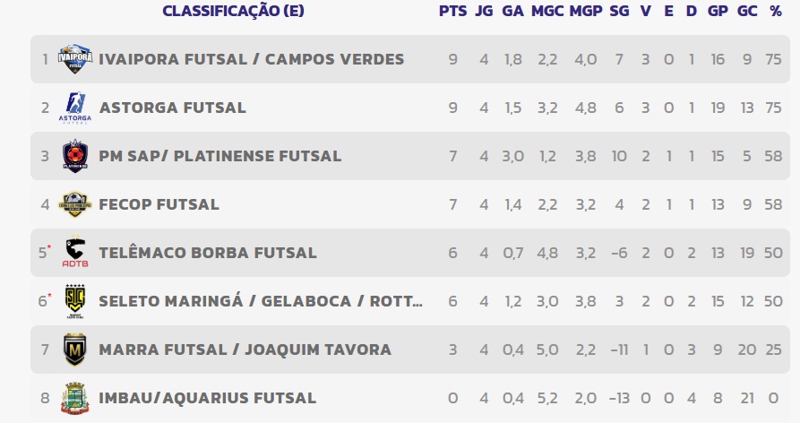 Com o resultado, a equipe telêmaco-borbense ocupa a quinta colocação do Grupo E, somando 6 pontos em quatro jogos. Até o momento, são duas vitórias — 2 a 1 sobre o Seleto/Maringá e 5 a 4 diante de Ivaiporã — e duas derrotas — 8 a 1 para o Platinense e 6 a 5 para Astorga. A ATBF marcou 13 gols e sofreu 19, com saldo negativo de seis.