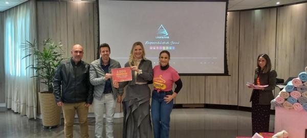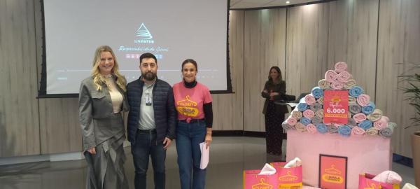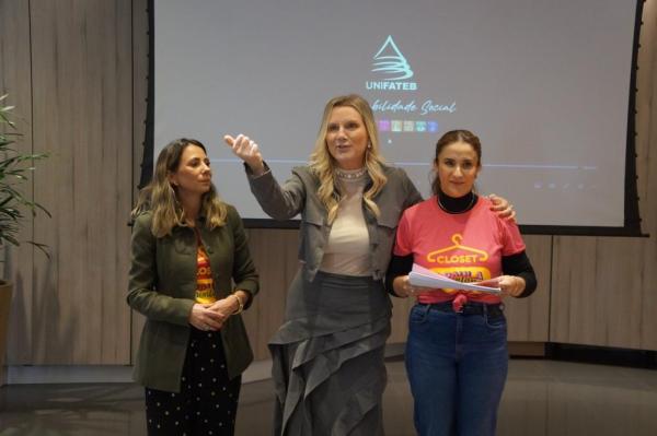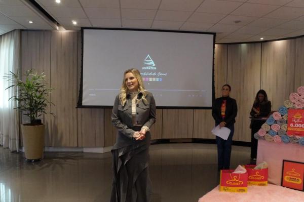 Falaram aos representantes das entidades beneficiadas, Tatianne Priscilla Mendes Lima, que preside a Instituição, a reitora da Unifateb, professora Paula, Alexandra Arcaten, presidente da Acitel Mulher, e também, Elielson Cardoso, que responde, dentre outras áreas, pela Responsabilidade Social da Braspine.