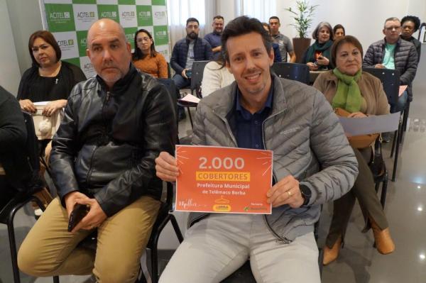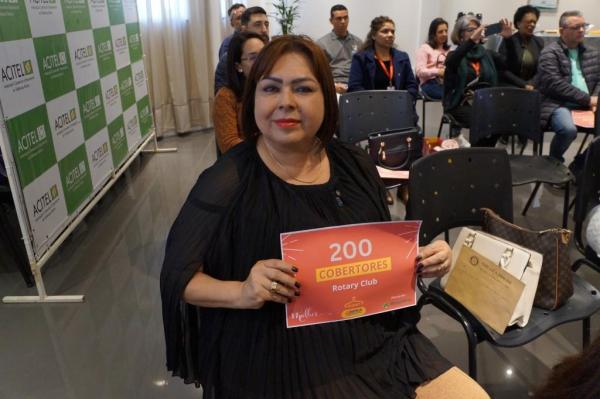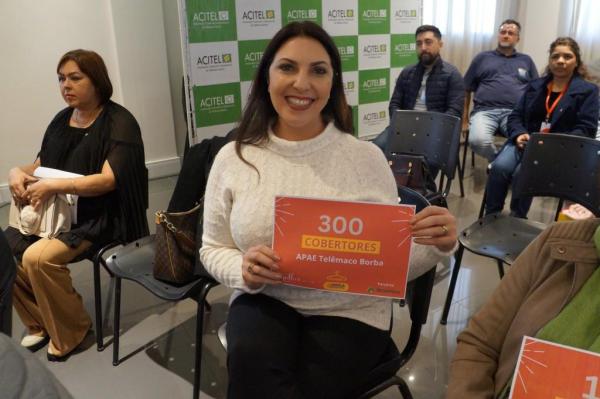 14/06/25 às 11:55:02) Com 23 instituições beneficiadas, ontem aconteceu a entrega de cobertores do projeto Closet Paula Pontara, uma realização da Associação Comercial e Empresarial de Telêmaco Borba, a Acitel, com a Acitel Mulher, e a empresária Paula Pontara, reitora da UniFateb, e com o apoio da Braspine.