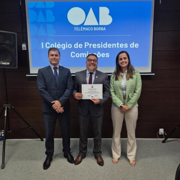 24/04/25 às 08:44:43) Na Subseção da Ordem dos Advogados do Brasil (OAB) de Telêmaco Borba, anteontem (22), aconteceu a entrega de certificados para os presidentes, diretores e membros das Comissões.