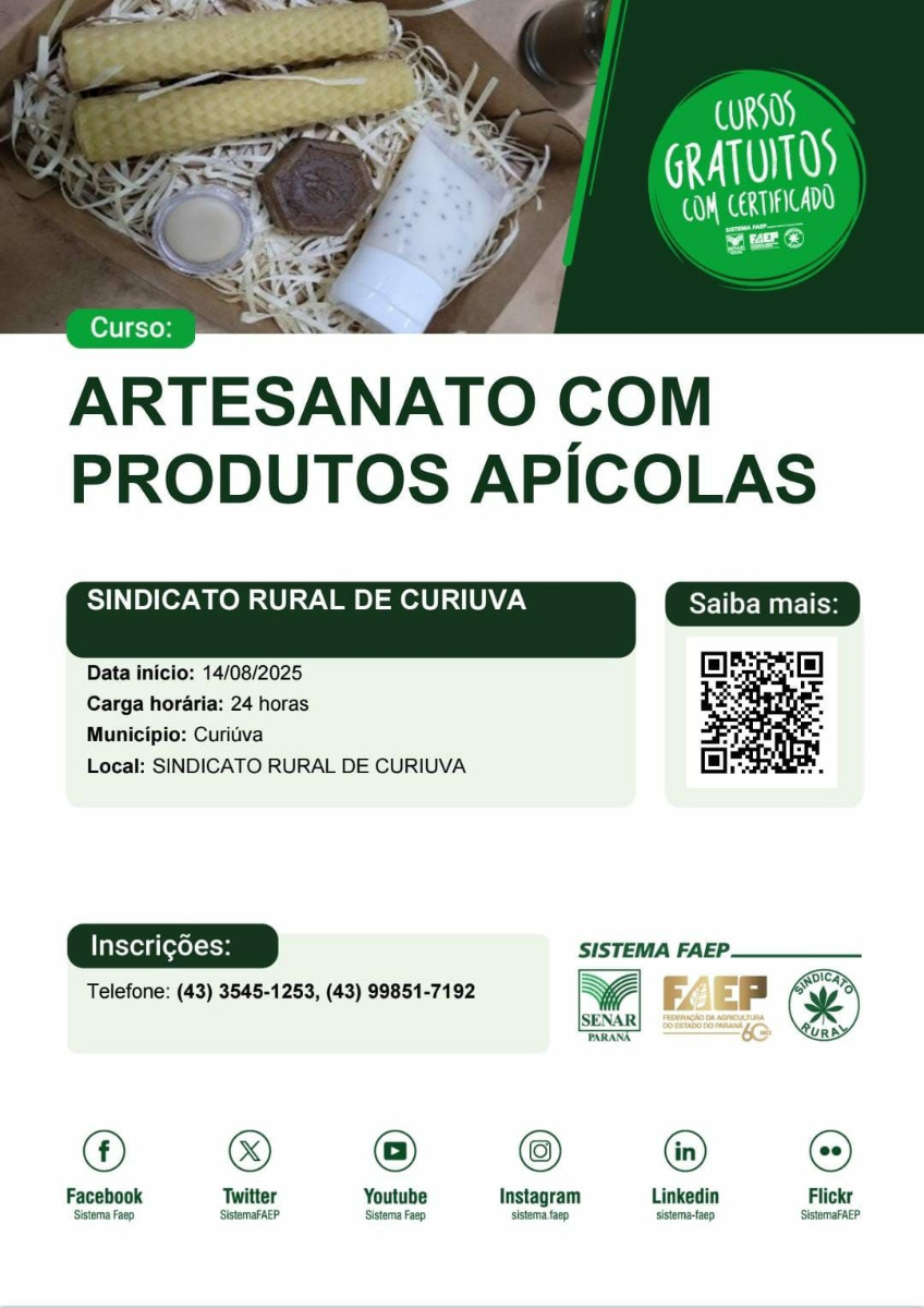 Foi divulgado também pelo Cras, o curso de Artesanato com Produtos Apícolas