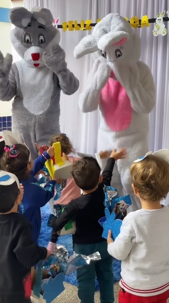 “Estivemos no CMEI Semeando Saber acompanhando a linda apresentação de Páscoa preparada com tanto carinho. 💛🐰
