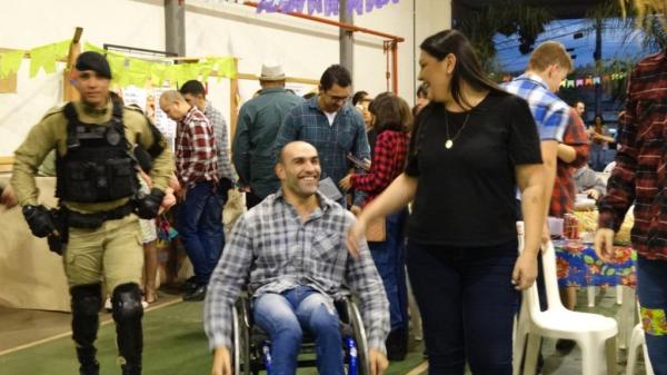 Não teve folga pra ninguém, e as funções nada valeram, pois a cadeia da festa, recebeu de juiz, comandante do Batalhão, presidente da OAB, vereadores, e até o medalhista paralímpico no Japão! Parabéns a todos, que entraram no clima do carinho a uma causa maior, que foi ajudar a Apae!