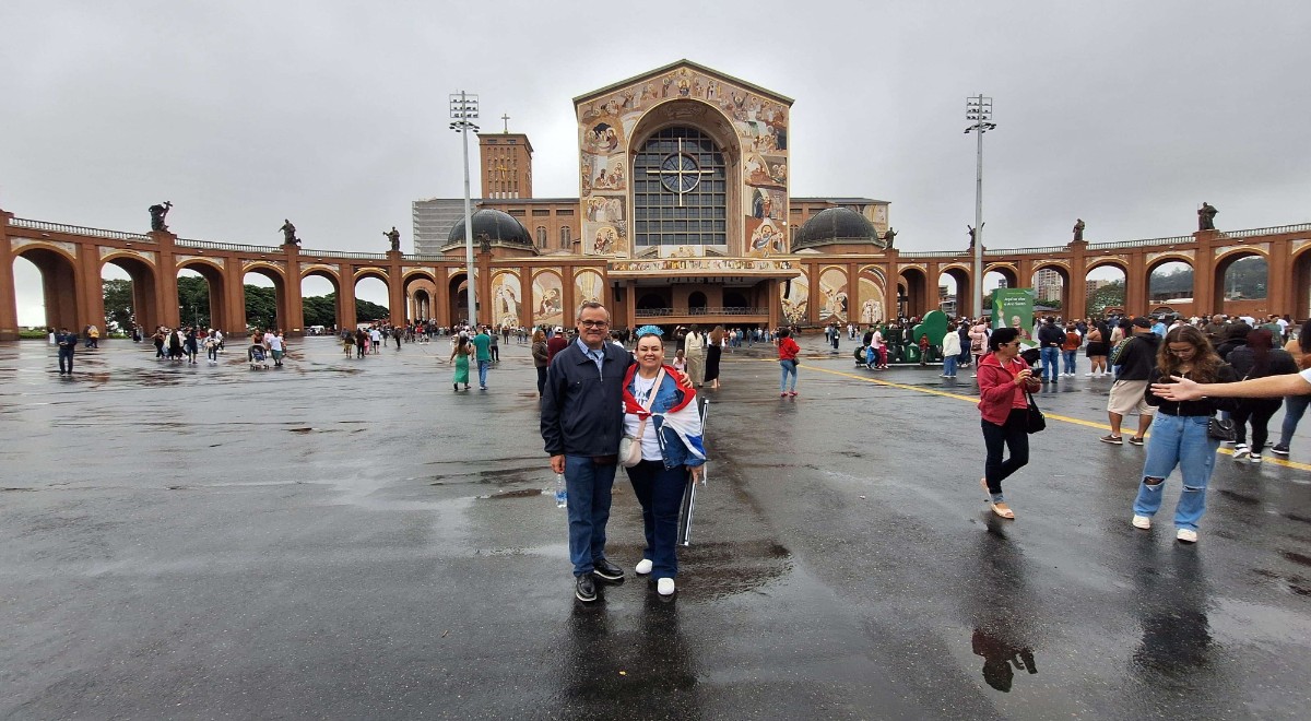 Professora, MARIA TERESA MERELES, que reside na Região Metropolitana de Asunción, no Paraguai. Ela é esposa de Oscar, que é ex-seminarista Redentorista. “Tive o prazer de ser recepcionado por eles e família, muito queridos, num dos encontros na capital paraguaia”. No Dia das Mães, eles estão em Aparecida, saudando a Padroeira do Brasil.