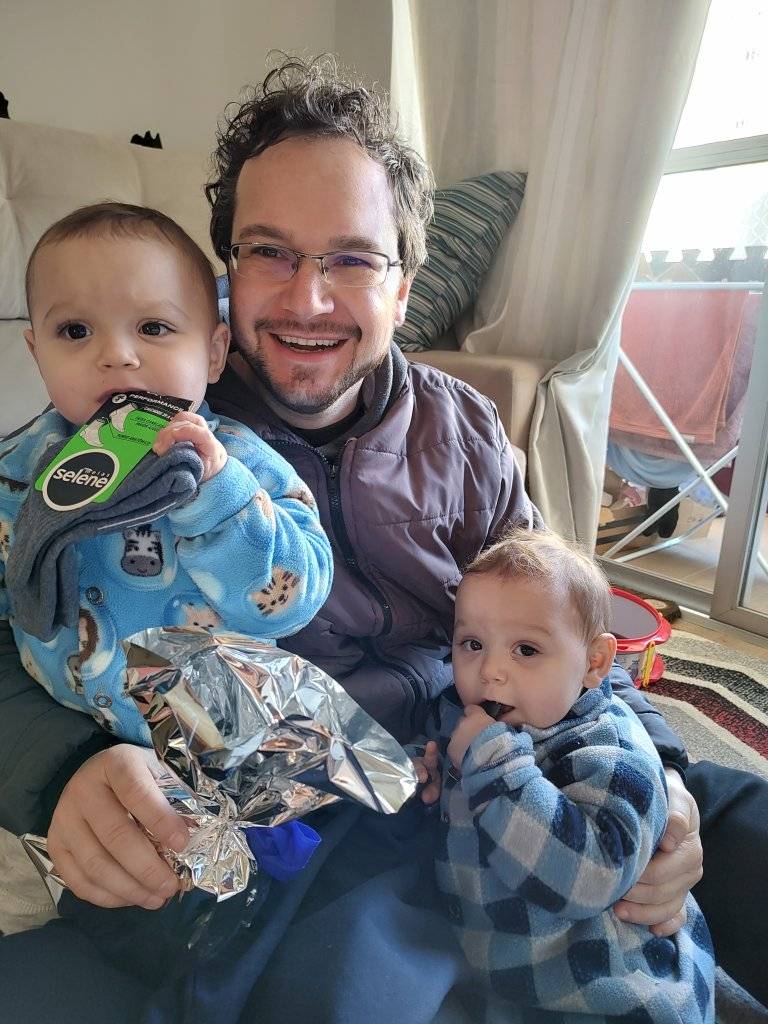 DIEGO ANTONELLI, com seus dois fofinhos gêmeos! Ele é jornalista e escritor.