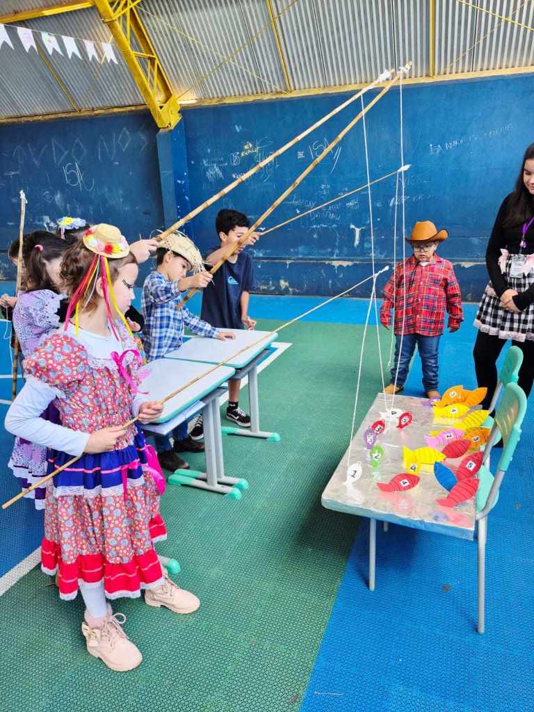As brincadeiras julinas também animaram a festa: a famosa pescaria, o divertido bicudo, a clássica dança das cadeiras e o bingo educativo, especialmente desenvolvido para cada ciclo, garantindo o aprendizado com diversão.