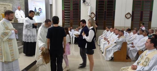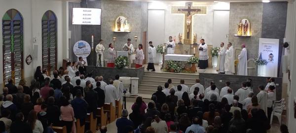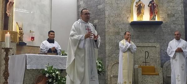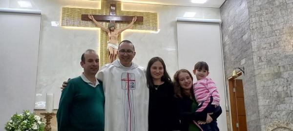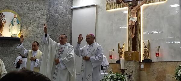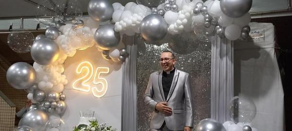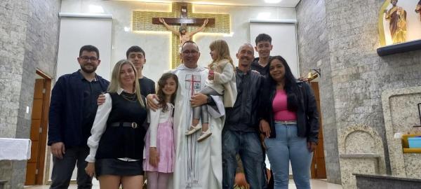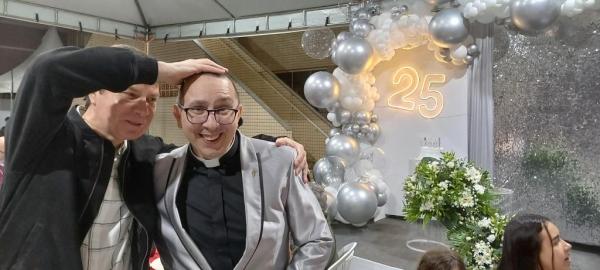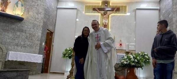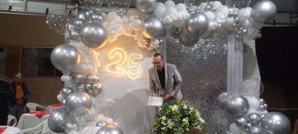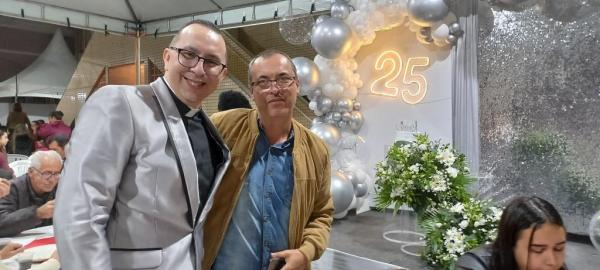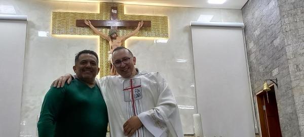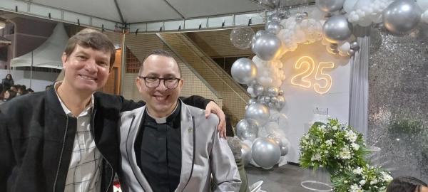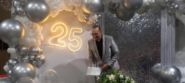 19/06/25 às 09:15:07) E ontem foi dia de comemorar os 25 anos de Ordenação Sacerdotal do padre Sandro Maciel Cândido Ferreira. Administrador Paroquial, que é a nomenclatura correta, ele é pároco da Paróquia São Pedro e São Paulo, cuja igreja Matriz está localizada na Área II.