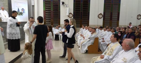 A receber a ordenação episcopal no início de julho, quem também fez questão de estar ao seu lado, e concelebrar a missa em ação de graças, foi o futuro bispo de Campo Mourão, monsenhor Evandro Luís Braun, que é da Diocese de Ponta Grossa, a mesma que pertence Sandro, e cuja solenidade será na catedral diocesana da Princesa dos Campos.
