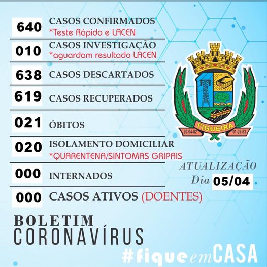 2021-04-06 às 08:21:55) “Chegamos a marca de 0 (zero) casos ativos em nosso município.