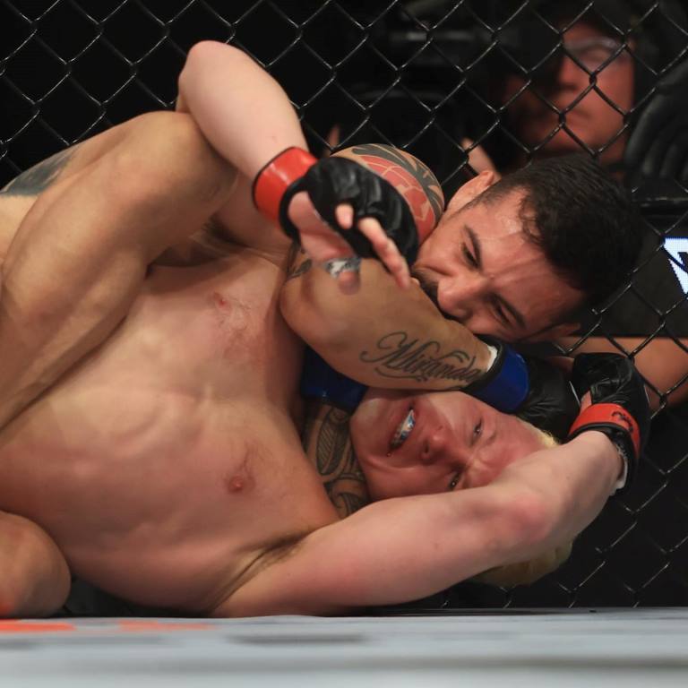 2023-09-12 às 07:27:41) O telêmaco-borbense Gabriel Miranda (Fly) conquistou, no último sábado (9), uma belíssima vitória no UFC 293, em Sidney, na Austrália. O brasileiro fez a segunda luta do card preliminar, na categoria peso pena, até 65,7 quilos, e finalizou seu oponente, Shane Young, aos 59 segundos do primeiro round, com um mata-leão.
