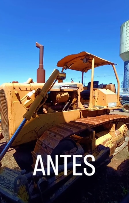 A motoniveladora? (corrigindo) — o trator esteira Caterpillar D6, que estava praticamente sucateado no pátio, passou por restauração e agora está recuperado e pronto para servir a população.