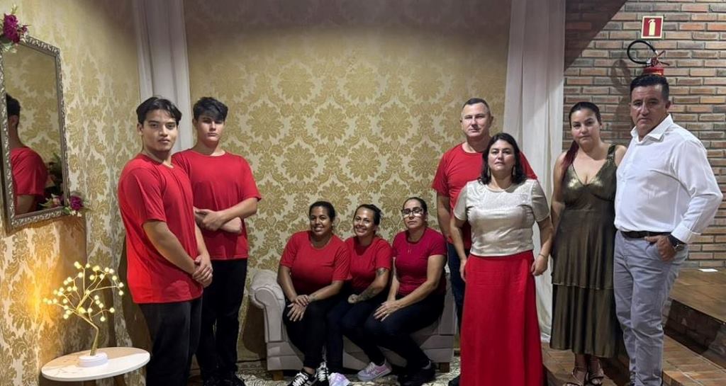 ROSELIA MARTINS, que ao lado do esposo Abraão Boreck (à direita, em vermelho), é referência no quesito Buffet, para Imbaú e região.