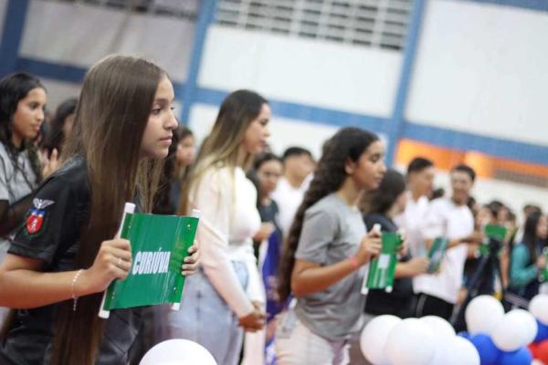 A chefe do Núcleo Regional de Educação (NRE) de Telêmaco Borba, professora Sueli Martins, e a prefeita de Telêmaco Borba, Rita Mara de Paula Araújo, tiveram a honra de recepcionar autoridades, professores, técnicos, a comunidade escolar e os mais de 570 alunos-atletas da cidade e da região.
