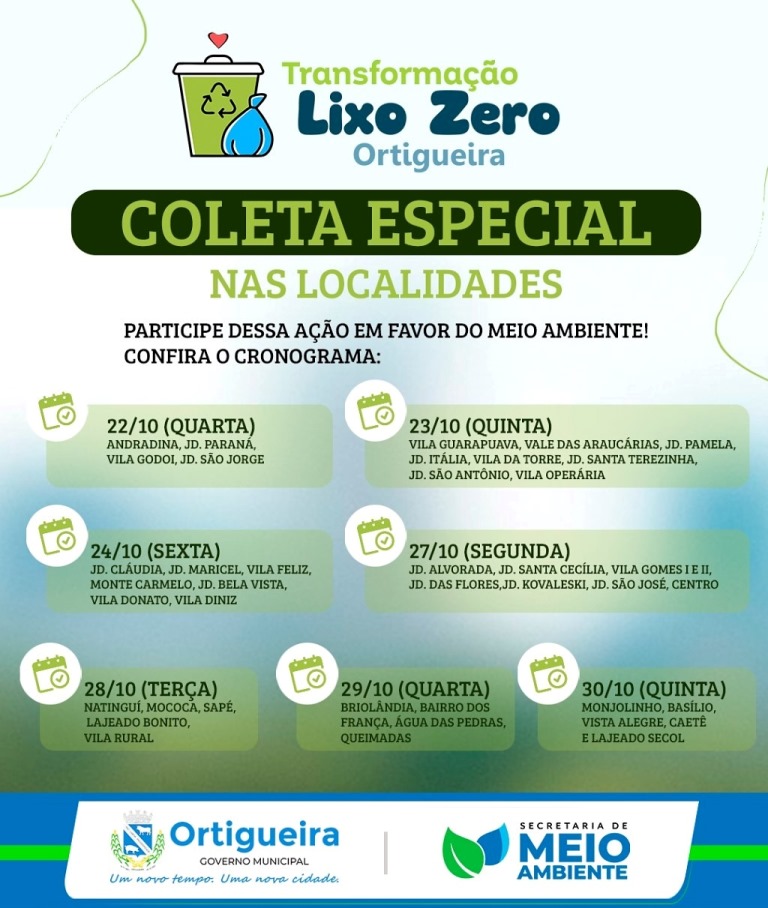 O caminhão da prefeitura vai passar pelos bairros — separe seus itens e participe dessa ação pelo meio ambiente! 🌱
