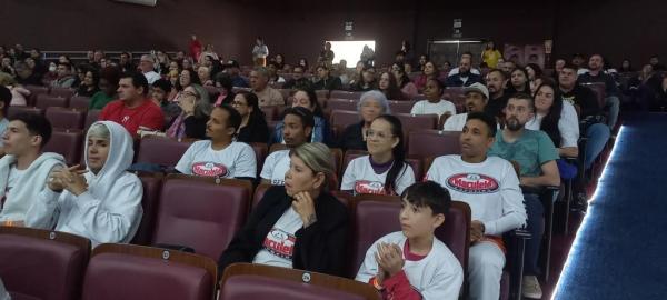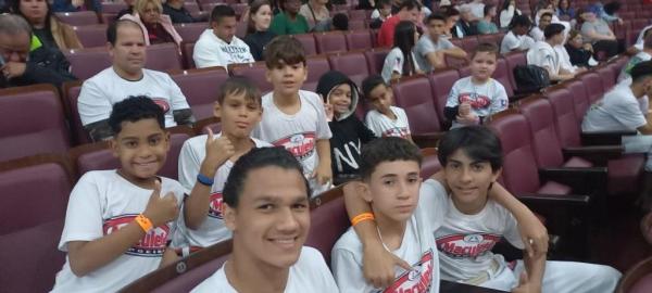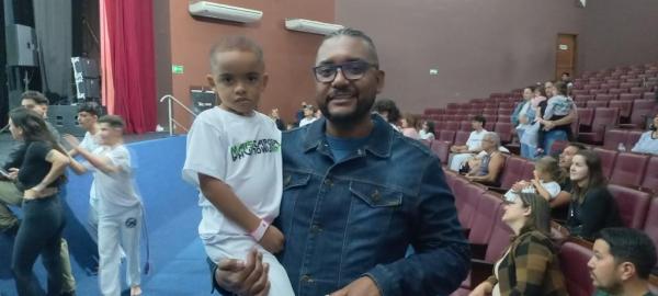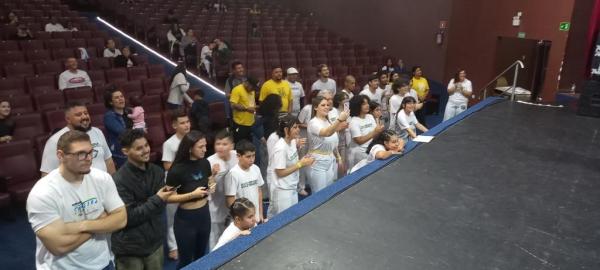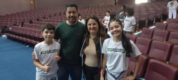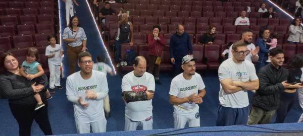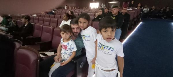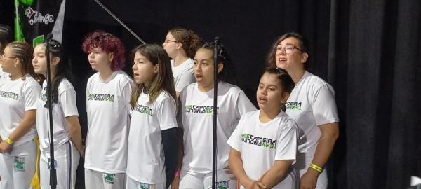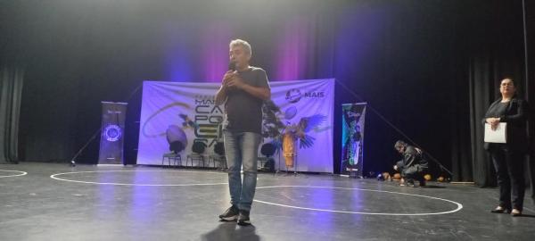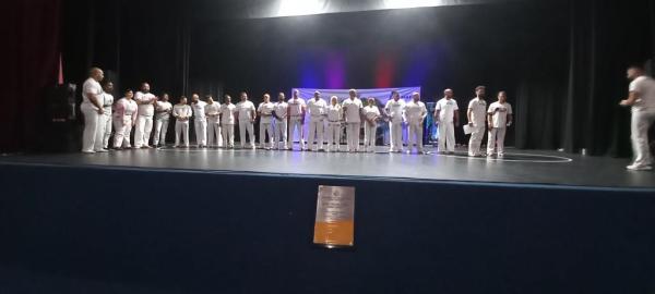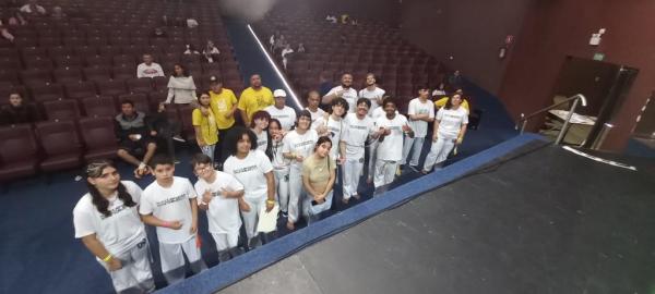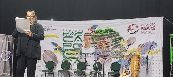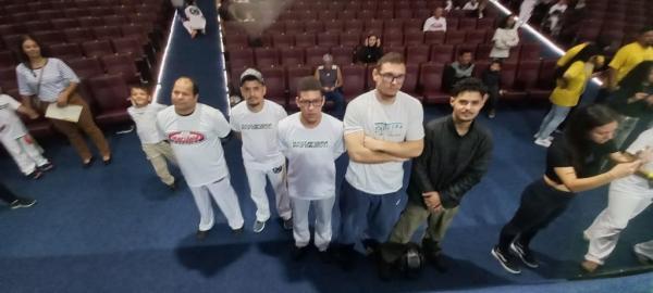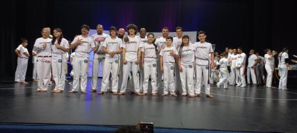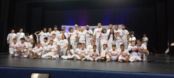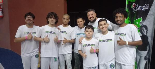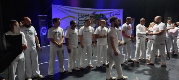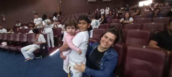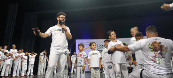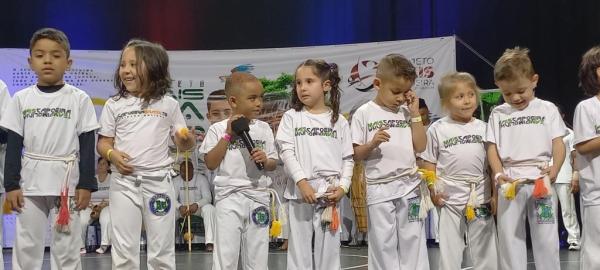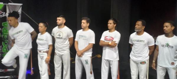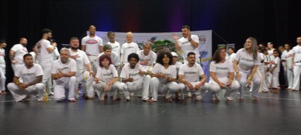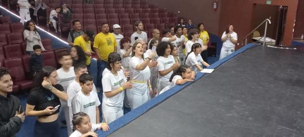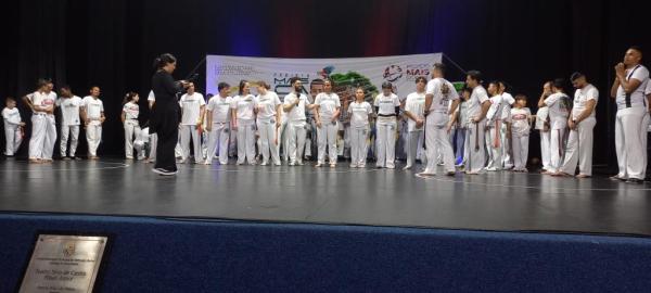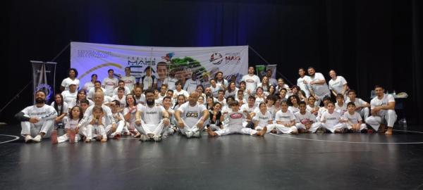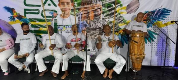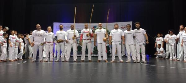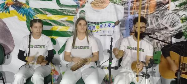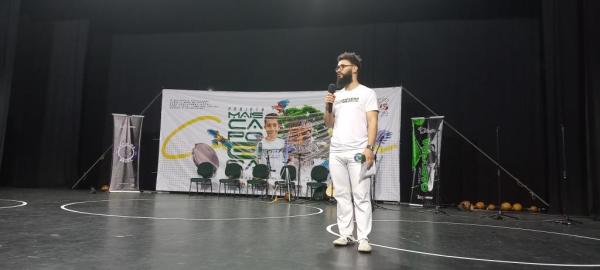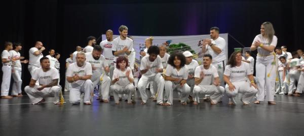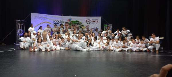 21/06/25 às 19:51:28) Por volta das 9:30 hrs deste sábado, no Anfiteatro da Casa da Cultura, começava um dia de muita alegria, gingado e encontro de amigos, e a união da mescla de arte marcial e a arte em si: Tratou-se do Festival Cultural Mais Capoeira 2025. Com cerimonial feito pela comunicadora Ketty Neves, o projeto é uma criação e de coordenação de DiMolinha, assim conhecido o professor José Wilson de Melo.