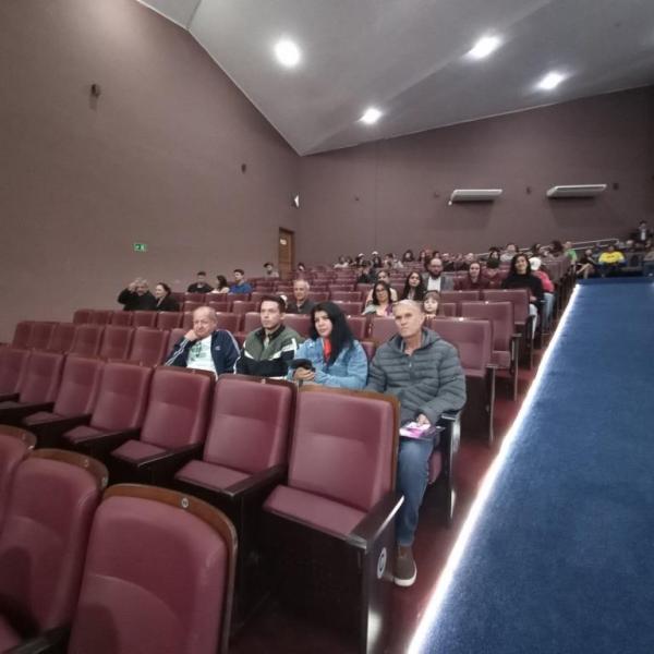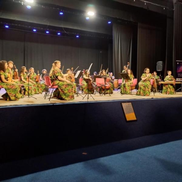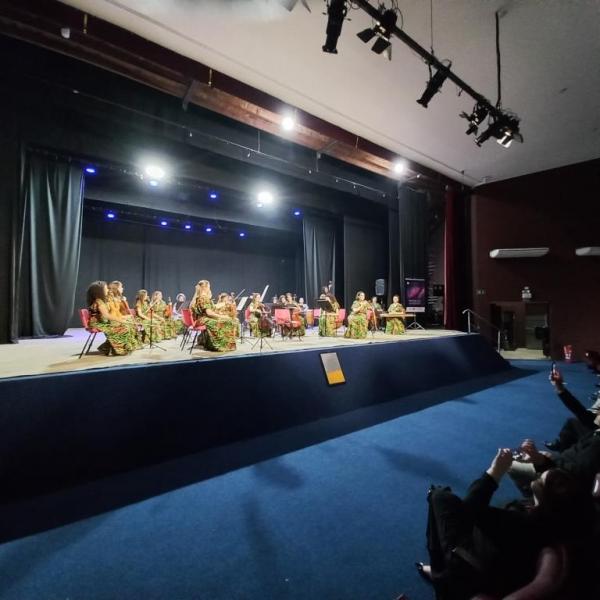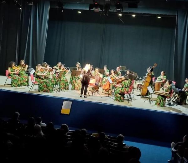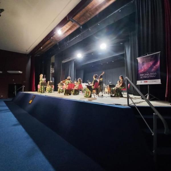 2023-08-26 às 11:34:21) Fazendo coro com o que se passava no interior da Casa da Cultura, no Teatro Maestro Sirinho, a chuva tranquila acalhou com o espetáculo “A Sinfonia para as Indústrias”, da Orquestra Ladies Ensemble, trazido à Telêmaco pela Prefeitura e o Sistema Fiep, e que encantou aos expectadores.