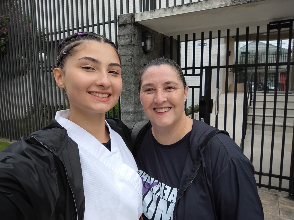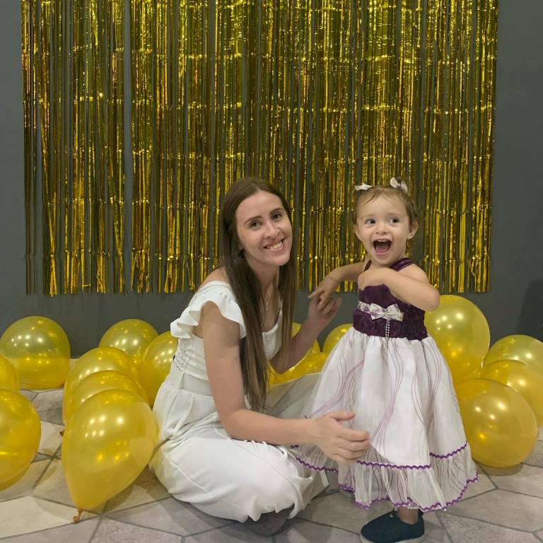 A estimada professora, CINTIA ASSUEIRO. No flash, ao lado da filha Lara.