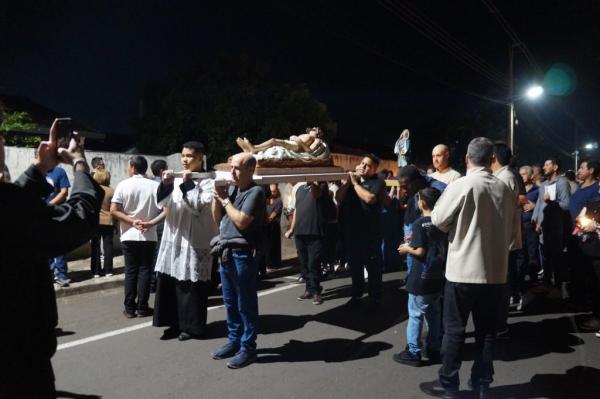 19/04/25 às 08:02:28) A procissão do Senhor Morto, da São Pedro e São Paulo, em Telêmaco, teve seu início na comunidade Nossa Senhora de Guadalupe, a mais nova da Paróquia que tem sua Matriz na Área 2, no Parque Limeira, aonde aliás, fora a conclusão deste ato de fé!
