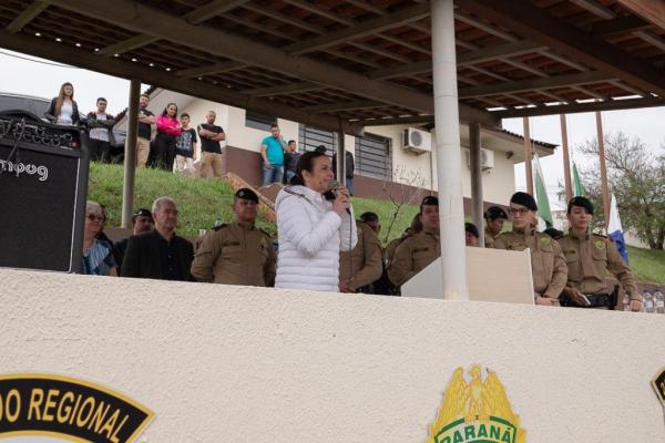A prefeita se disse lisonjeada com o convite, parabenizou os policiais promovidos e suas famílias e também destacou a importância da Polícia Militar para sociedade. “Quero agradecer à PM pelas ações que implementam em nosso município. Que tem feito a nossa segurança ficar a cada ano melhor. Também quero destacar a união das nossas forças policiais, pelo belo trabalho em harmonia. Parabéns ao comandante, tenente-coronel, Claudio Arthur e os demais policiais pelo novo cargo. Estou muito feliz de ter esse comandante conosco, cuidando da nossa cidade”, discursou.