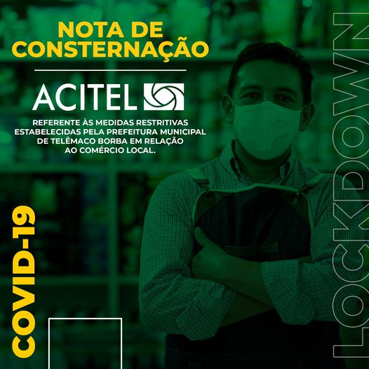 “A ACITEL - Associação Comercial e Empresarial de Telêmaco Borba vem através desta apresentar uma Nota de Consternação referente às medidas restritivas estabelecidas pela Prefeitura Municipal de Telêmaco Borba em relação ao comércio local.