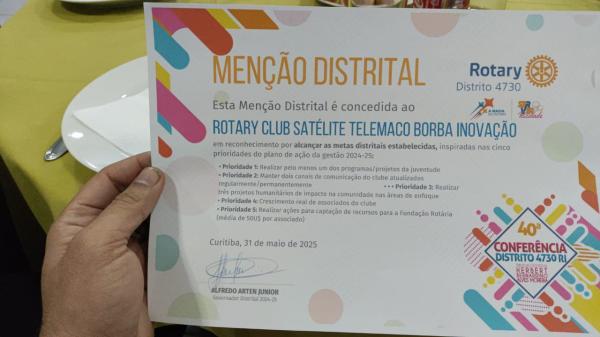 26/06/25 às 08:54:46) A noite de 18 de junho passada, foi especial ao Rotary Club Satélite Curitiba III Milênio Telêmaco Borba Renovação, que teve a Festiva de transmissão de posse, quando o até então presidente, Adival Rodrigues, foi sucedido por Edson Gersco Prestes, num concorrido evento.