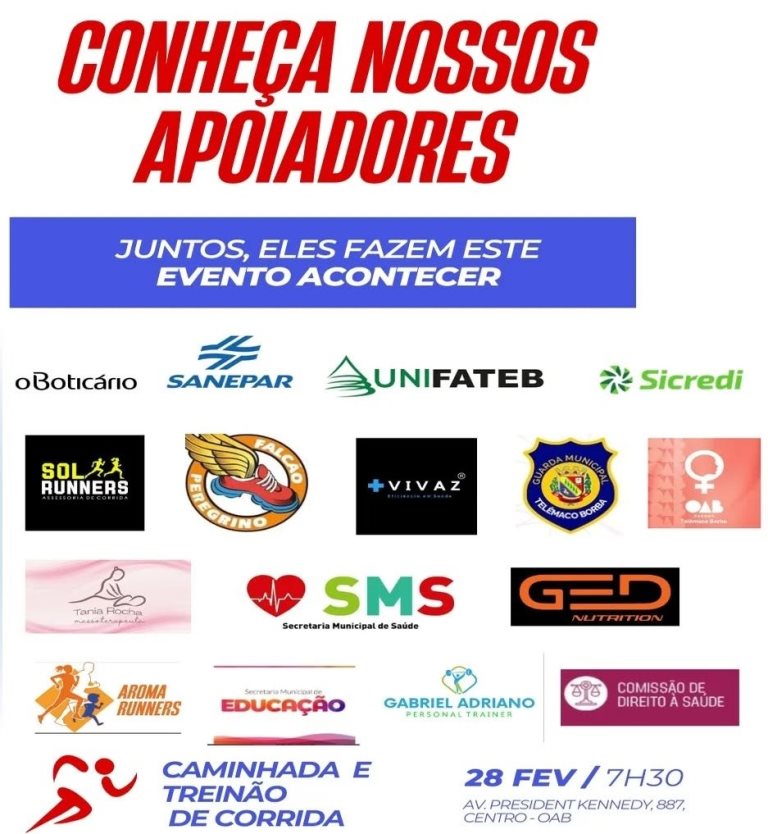 A Ordem dos Advogados do Brasil – Subseção de Telêmaco Borba convida toda a advocacia e comunidade para participarem da Caminhada e Treino de Corrida, que será realizada no dia 28 de fevereiro, com início às 7h30, em frente à sede da OAB.