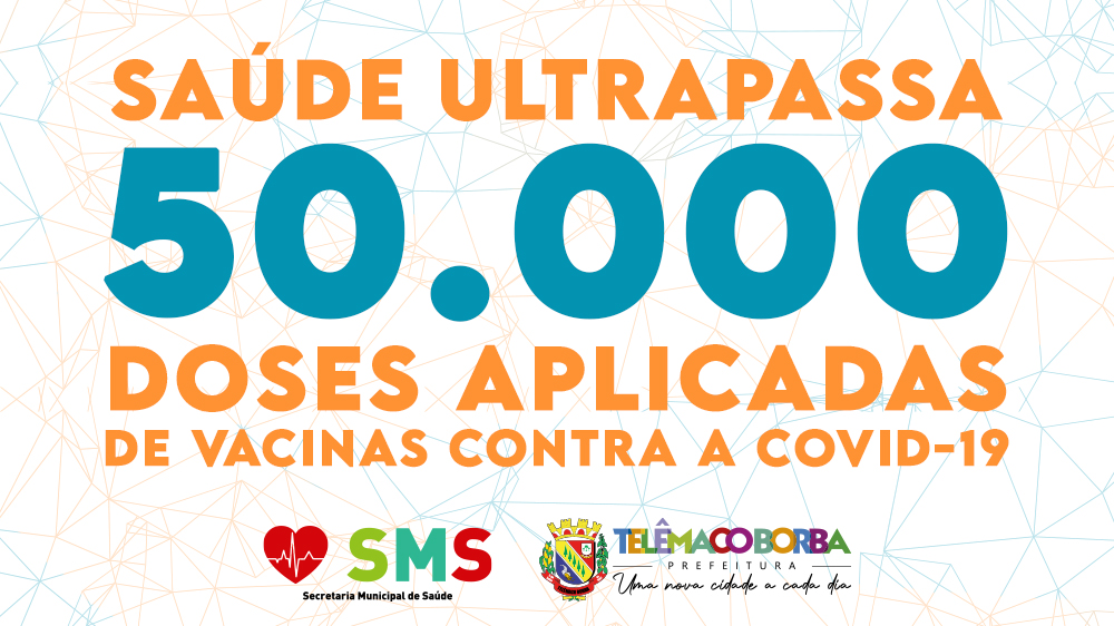 2021-08-03 às 07:17:40) A Secretaria Municipal de Saúde (SMS) ultrapassou a marca de 50 mil doses de vacinas contra a Covid-19 aplicadas. Na última semana chegou à marca de 50.373 doses aplicadas, incluindo primeira, segunda e dose única.