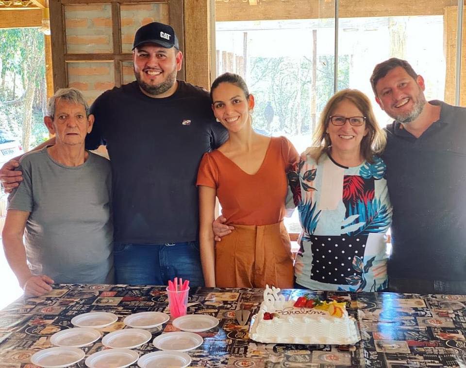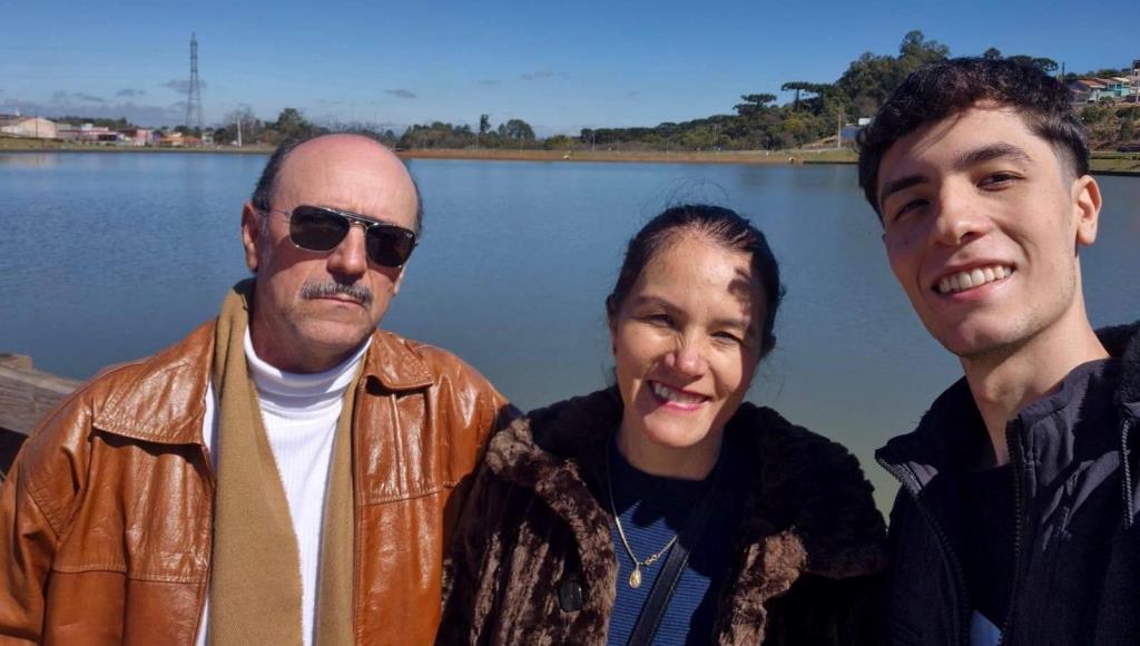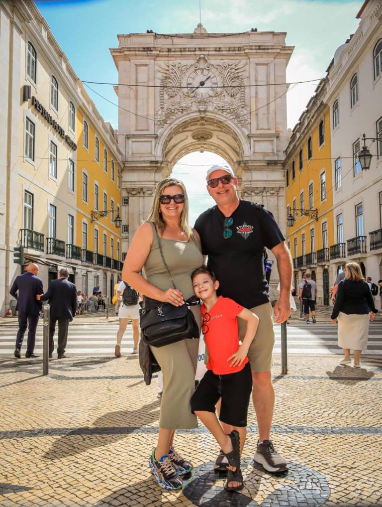 EVELYN FERREIRA CORAIOLA, ao lado do esposo, Dr. André Coraiola, e do filho, João Horácio.