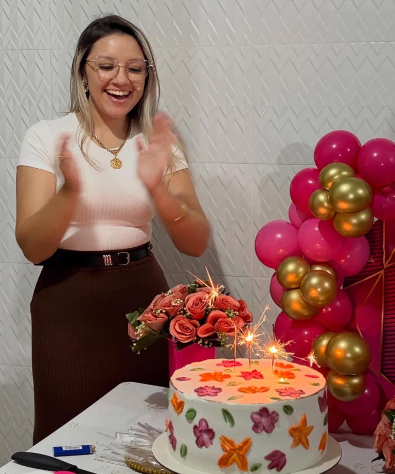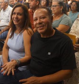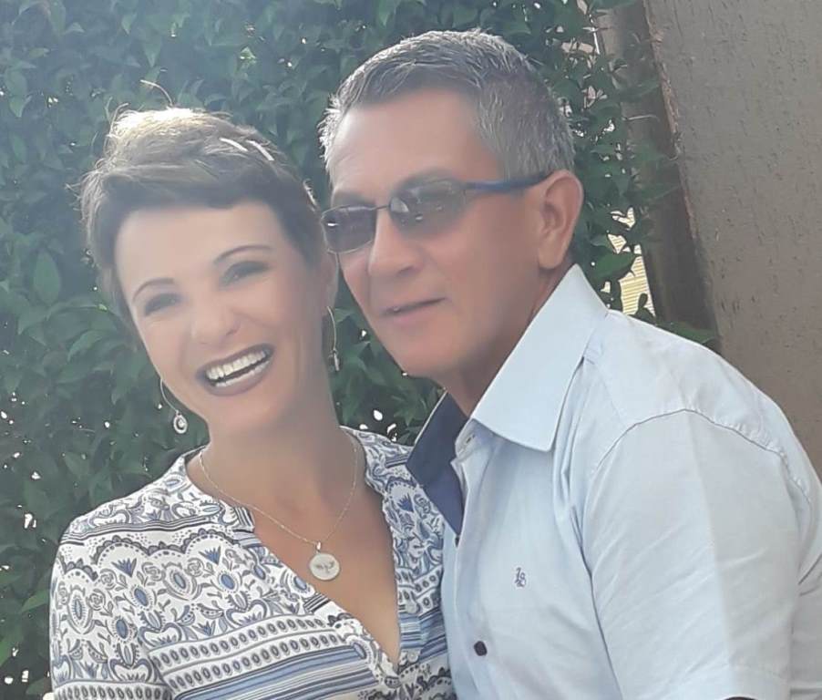 A professora, ISABEL GUIMARÃES, no flash, ao lado do esposo Edinei.