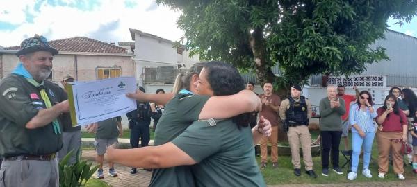 27/04/25 às 11:33:06) E na tarde de ontem, na Praça da Bíblia, a Jiri-Aron, aconteceu a cerimônia festiva de fundação e primeiras promessas do Grupo Escoteiro Asafe – 287/PR, com a presença de autoridades civis, políticas e militares. O novo grupo tem como diretora-presidente, Glauci Lima dos Santos.