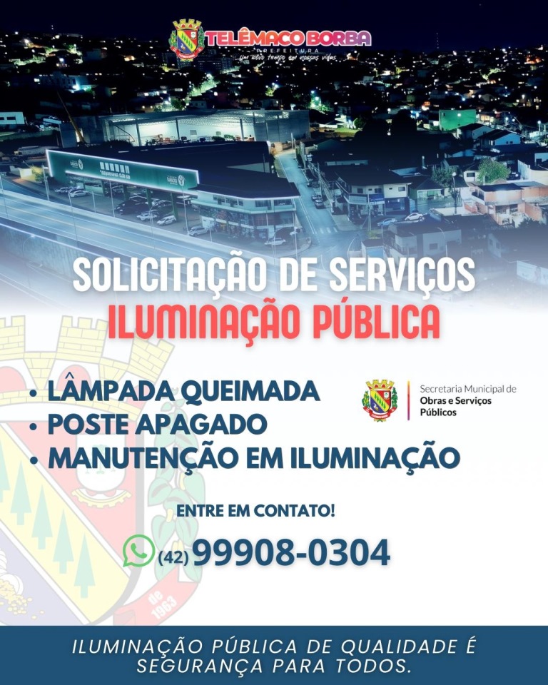 Prefeitura disponibiliza número de WhatsApp para manutenção da iluminação pública