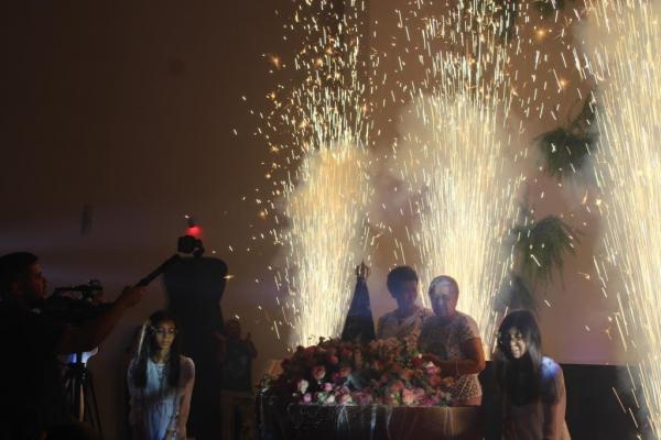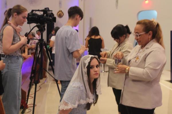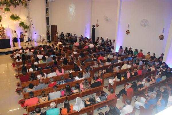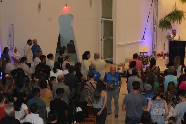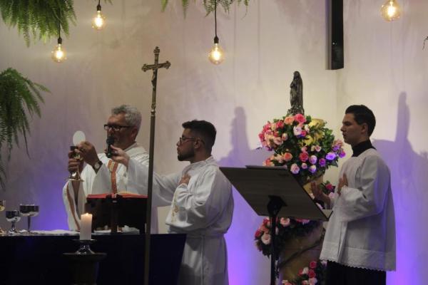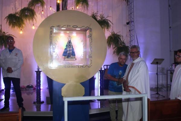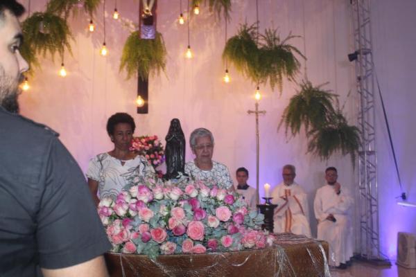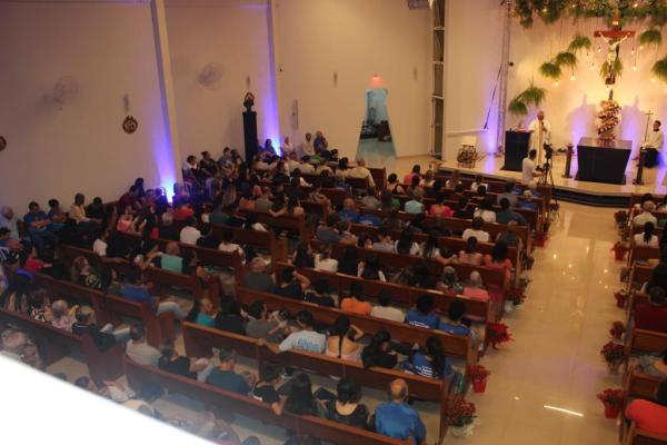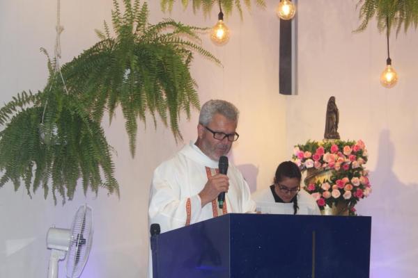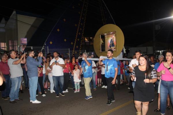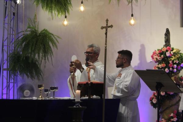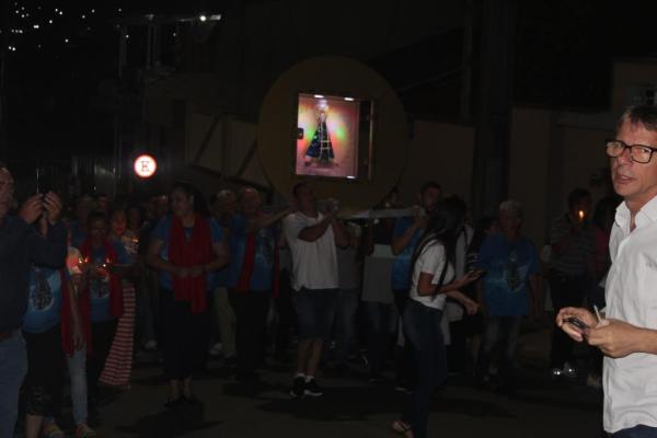 2023-10-13 às 10:16:11) O Dia da Padroeira do Brasil, que leva o nome também da Comunidade do Socomim, teve ontem na capela, três missas. O Oberekando esteve na terceira, que fora encerrada com uma procissão luminosa nas ruas em sua proximidade. Presidida pelo pároco da Matriz Redentorista, Nossa Senhora de Fátima, padre Primo Aparecido Hipólito, aconteceu também a coroação de Nossa Senhora, e a consagração de crianças e demais paroquianos.